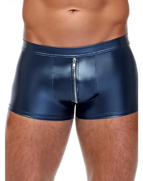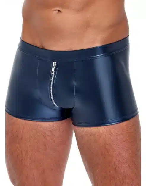 The Blue metallic zip boxer short are meant to make you feel hot and sexy. These little shorts feature a front opening zipper.