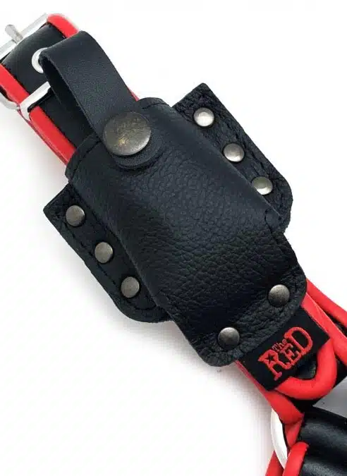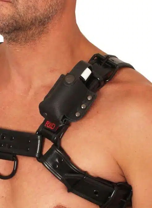 Fits on all harnesses with straps of max. 35 mm wide. Simply slide the strap of your harness into the back passageway of the holder.