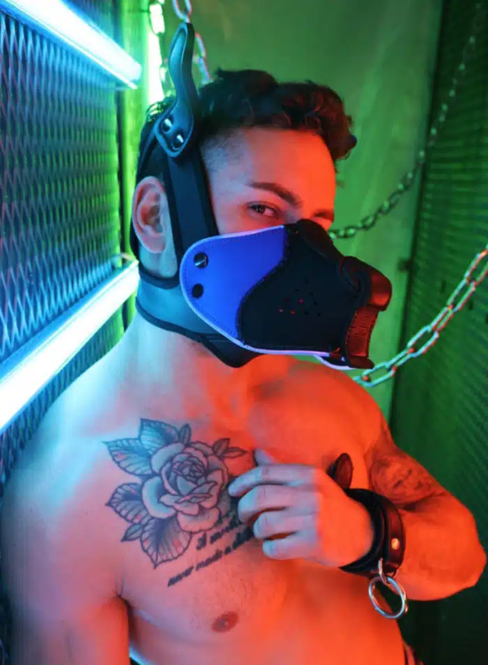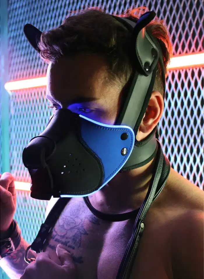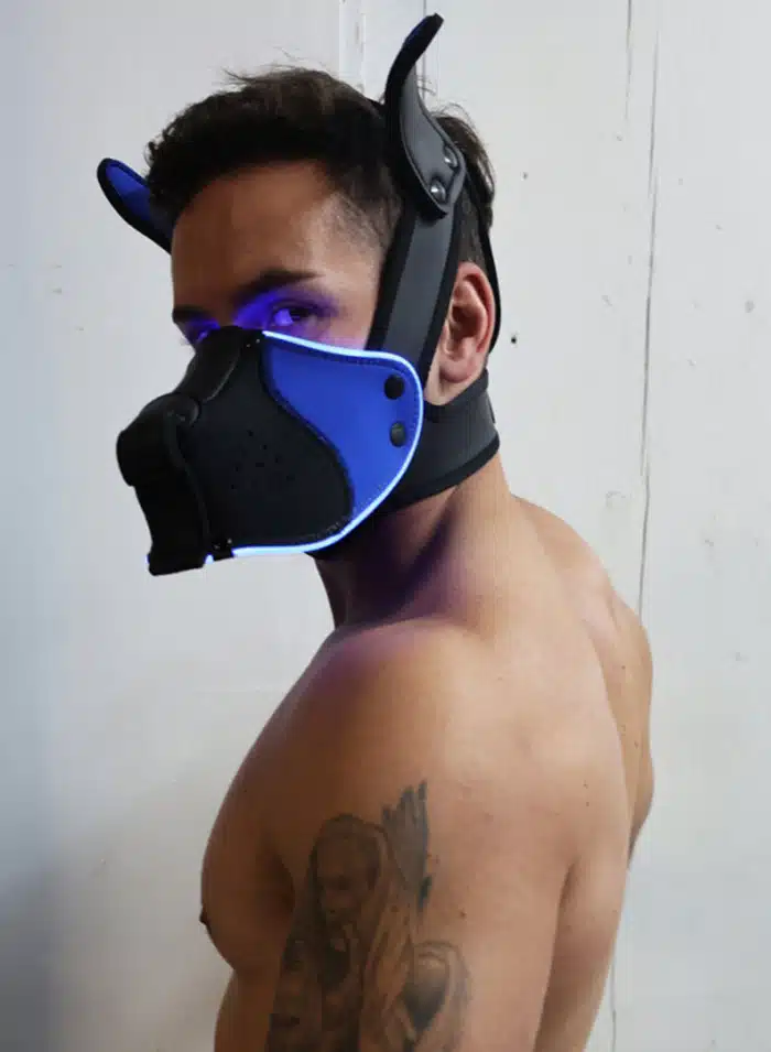 In the dimly lit room, the Breedwell Poundtown Pup Mask 2.0 gleams with a seductive edge, its neon glow casting shadows that dance across bare skin. The rubberized neoprene clings to your face, molding to every contour, transforming you into a creature of primal desire. Its squared muzzle, breathable yet commanding, hints at the secrets it holds—adjustable, snug, a perfect fit for the night’s unspoken promises. The soft ears twitch with every heated whisper, while the LED lights pulse in rhythm with your quickening heartbeat, shifting from sultry red to electric blue, teasing the senses.