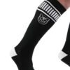 Sports socks that feature the Fetish color codes. They are designed to be worn when clubbing, with sneakers, a pair of boots or however you want!